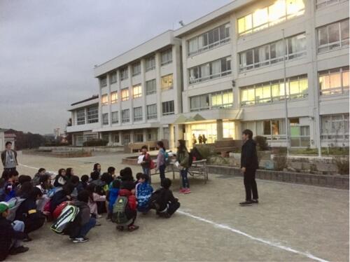 遊びが終わった後、終わりの会があり、地域の代表の方から「あなたたちが、おじいさんやおばあさんになったときも、今日のように子供たちに、このような遊びを伝えてあげてください」とお話がありました。担任の先生からも「むかしあそびは、昔から今に伝わる遊びということですね。」とお話があり、これからも大切にしていきたいものであることを、みんなで感じました。