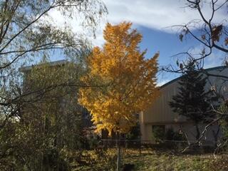 落葉の時期に入りましたが、ところどころに、まだ色鮮やかに葉をつける木々があります。永山小学校のイチョウの木も、まだまだきれいです。
