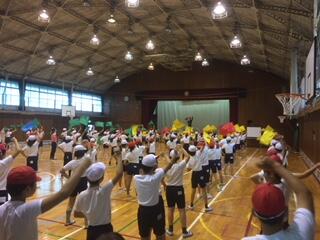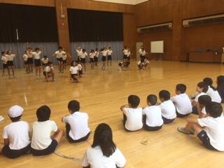 5年生と6年生。午後校庭での練習をスタートさせましたが、途中から雨が降り始めてしまい、後半は体育館へ移動して、練習に取り組みました。表現での、いろいろな動きのポイントを確認し、より良い動きを目指して繰り返し練習しました。
