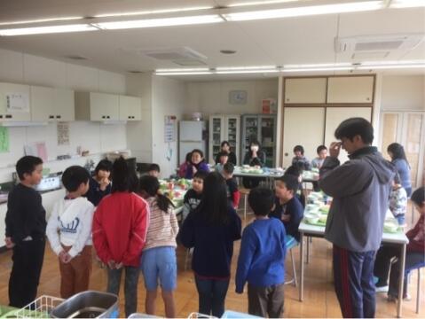 昨日から、わかくさ学級と3年生の級食交流がスタートしました。3年生5~6名がわかくさ学級の調理室に来て、一緒に楽しく級食を食べます。