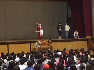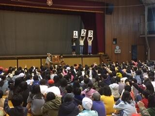 今日は、12月13日(木)です。雲の多い一日。時々パラパラと雨も降る寒い一日です。今朝は、体育館で児童集会がありました。「サンタさんが煙突に落とした物はなーに?」というクイズで、三択で答えを当てるというゲームです。