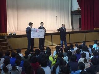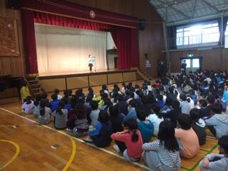 5時間目。体育館で2学期終業式を行いました。終業式を始める前に、今日は多摩中央警察の方々が来てくださり、冬休みの交通安全について講話をいただきました。