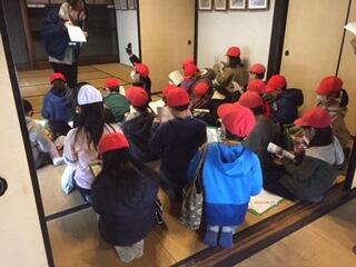 以前連光寺地区にあり、今の場所へ移築されたという「旧富澤家住宅」。3グループに分かれて活動しました。入口の門(「薬医門」というそうです。)をじっくり見たり、この屋敷にしかなかったという式台付玄関から奥の間へ上がったりしました。また、土間やいろりのある部屋を見学しました。ビデオでは、この場所へ移築が完了するま作業の様子などを見て学びました。