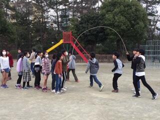 お互いに声を掛け合い、途中で引っかかってしまっても、「大丈夫だよ!」と励ましあいながら頑張っていました。5分間で跳べた回数を数え、多くのクラスが「自己ベスト」を更新できたようです。残念ながら更新できなかったクラスも、必死に頑張っている姿が見られ、それが素晴らしいと思います。