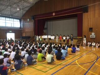 生活指導担当の先生からは、「体の調子に気を付けながら、外遊びをしよう」という今週の目標について話がありました。暑さと上手に付き合いながら、体を動かしてみましょう。