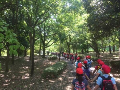 永山南公園から、学校までの最後の歩き。「つかれたなぁ」と口にしながらも、元気に歩きとおすことができました。しっかりと食事をとれたこと、水分をこまめに補給したこともあり、元気に遠足を終えることができました。よく頑張りましたね。