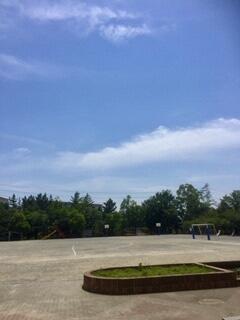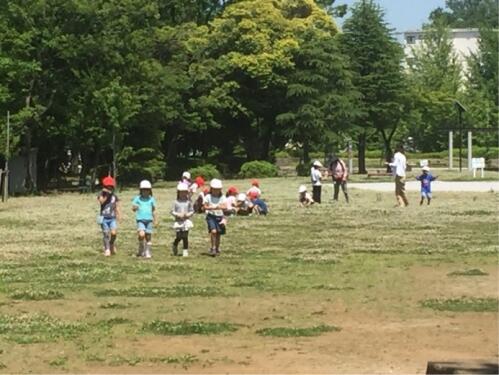 週末、こぐま保育園は、永山小の校庭を使って運動会を行います。今日はその準備と事前の練習で園児さんたち、先生方が校庭で活動をしていました。