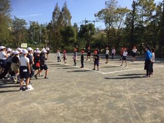 連休明けの火曜日。みんなで頑張った運動会の余韻を感じながら一日がスタートしました。校庭には、運動会で使ったラインがまだしっかりと残っています。