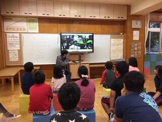 今日、わかくさ学級では、昨日の合同遠足の振り返りの学習をしていました。現地で撮影してきた画像をモニターで見ながら振り返りました。園内ではグループごとに行動していたので、他のグループの様子を見ることができました。