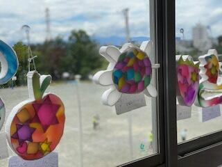 教室の窓に展示されていましたが。夜、外から見ても、きれいに見えるかなー。