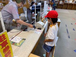 図書館の中では、担当の方々が指人形を使いながら図書館の概要について教えてくださったり、大型紙芝居を見せていただいたりしました。また、図書館のカードを実際に使い、本を2冊お借りすることができました。受付の所へ行き、カードを使って上手に借りることができました。