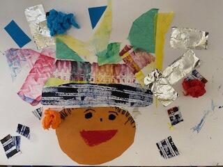 2年生の作品たちです。「ミリーのすてきなぼうし」という作品で、国語の学習の中でも取り組んだ題材をもとにしながら、思い思いの素敵な帽子を作りました。顔の表情もいいですよね。また、形や色、風合いなど、その人なりの持ち味が反映されて、とっても素敵です。