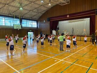運動会は開催できなくなりましたが、体育の学習として、そして子供たちにとっての良き目標となることを願い、各学年で表現運動(ダンス)に取り組んでいます。今日は、体育館で2年生や1年生、6年生が頑張って取り組んでいました。(写真は2年生と1年生です。)