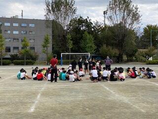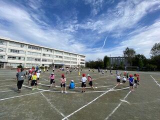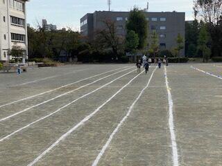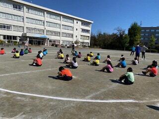 赤と緑の羽織をまとった2年生たちが元気に校庭に飛び出してきました。表現運動の学習に取り組みました。これまでと少し違った隊形を練習したり、見学席から自分の立ち位置に移動していく流れを確認&練習したりしました。頑張っていました!