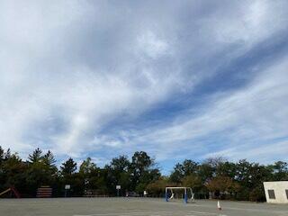 休職前の4時間目&5時間目、1年生が校庭で表現運動の学習に取り組みました。天気は下り坂・・・と思っていたのですが、あっという間に青空が広がってきました。きっと1年生たちの頑張りを応援してくれているのでしょう。