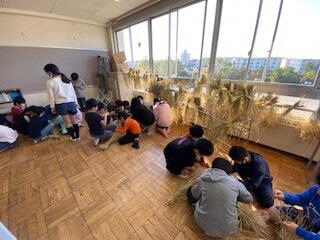 5年生が、先日刈り取った稲穂から手作業でお米を収穫していました。割りばしやフォークなども使いながら、進めていました。