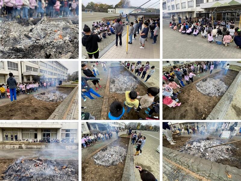朝から用務主事さんたちが、焼き芋をするための火を起こし、ちょうど良いおき火状態にしてくれました。