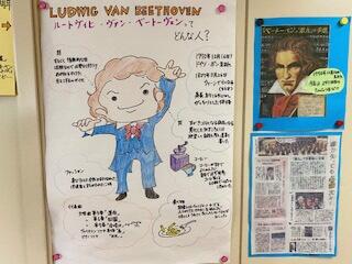 今、音楽室前の廊下の壁に、ベートーヴェンについての掲示があります。私も、それを見て、いろいろ学びました。テレビなどで取り上げる番組があることも紹介されていました。