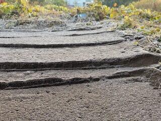 今朝はまた気温が下がり寒かったですね。学校に向かうために家を出ると、近所にある畑や雑草の上に、白い「霜」が降りていました。「あー、いよいよ霜が降りてきたかー」と冬本番に入ったことを実感しました。霜は、地中の水分が固まってできる「霜柱」とは違い、空気中の水蒸気が固まり、氷の結晶として薄く積もったものなのだそうです。きっと近いうちに、霜柱を見ることがあるかも知れませんね。