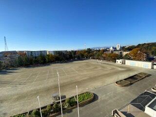 写真は、昨日撮ったものです。「校庭に雪がっ!?」・・・いえ、違います。冬場の校庭のコンディションを少しでもいい状態に保つために、塩化カルシウムという薬剤を散布してもらいました。校庭の土の中にある水分を凍りにくくすことで、それが解けた時に校庭がぐしゃぐしゃになってしまうことを防止したいと考えています。