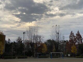 今日は、12月9日(水)です。空一面どんよりとした雲に覆われ、太陽も姿を見せず、寒々と感じる一日です。そんな中ではありますが、校庭に目をやると6年生たちが元気にハードル走の学習に取り組んでいました。頑張っています!