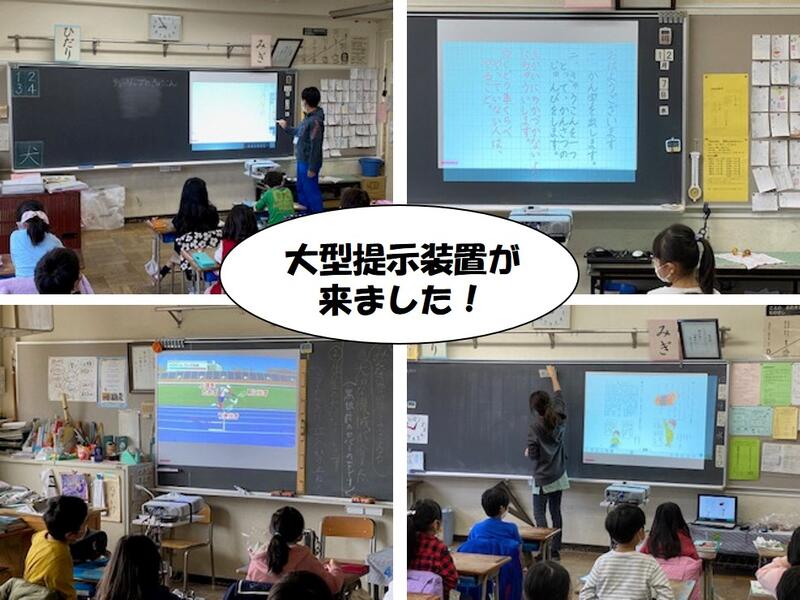 多摩市では、すべての小中学校にプロジェクター型の大型提示装置が配備されました。(通常の学級と固定の特別支援学級に配備)今週、学校に届き、担当の方によりセッティング等が終了し、いよいよ使用できる状態になりました。昨日の夕方には、教職員で集まり、副校長先生や視聴覚担当の先生からのレクチャー&アドバイスを受け、いよいよ各教室で使用することになりました。