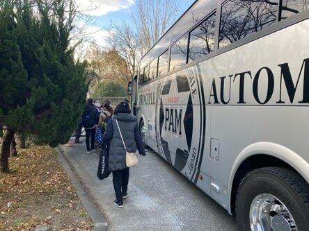 バスに乗り込みます。バスは、5分おきに車内の空気が入れ替わるそうです。