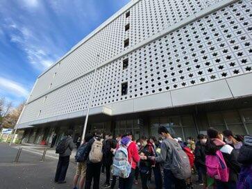 これこら科学技術館の見学です。検温、消毒をしっかりして入館します。