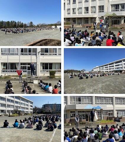 修了式は終了し、その後、転校していく友達の紹介、多摩警察署の方の春休みの交通安全委ついての講話、生活指導担当の先生からの春休みの生活についての話などを聞きました。少し長い時間にはなりましたが、最後までしっかりと参加することができました。