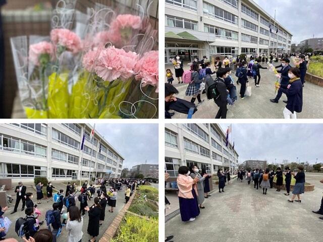 校長の話では、とにかく大変な1年間ではあったけれども、すごーく頑張った子供たちの頑張りをたたえました。もう、それしか言葉がありません。最後に、在校生全員で6年生の方を向いて、感謝の気持ちも込めながら「卒業おめでとうございます!」のメッセージを伝えました。
