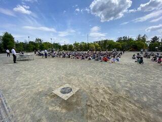 今日は永山小学校の離任式。どうしても全員で集まってやりたかったので、校庭で行いました。「雨は降らないかなー」「昨日みたいに風が強かったらどうしよう・・・」などと心配していましたが、お天気は味方をしてくれました!むしろ日差しで暑さも感じましたが、ながやまキッズ、よーく頑張りました。気持ちを込めて参加することができました。