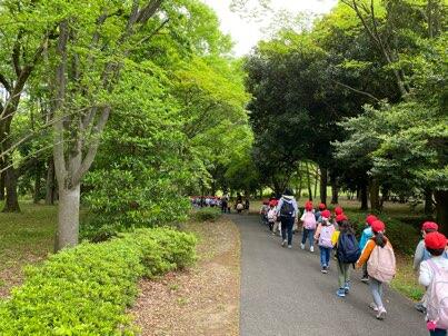 列をしっかり作り、おしゃべりせずに歩けるかな。