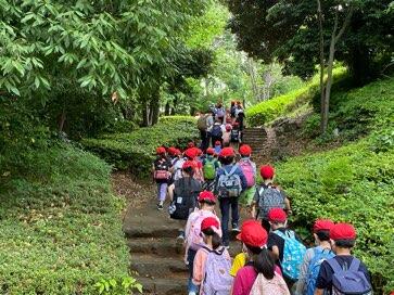 写真は、ちょうど永山駅と永山小の間にある「さえずりの森」です。学校の側に、こんな素敵な森があるなんて、ほんとうに嬉しいですね。先週、2年生が生活科の学習で、さえずりの森に行きました。この森を守り、大切に管理をしてくださっている皆さんがゲストティチャーとして、森の中を案内して下さいました。絶滅の心配がある植物も何種類も咲いているそうです。