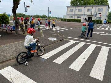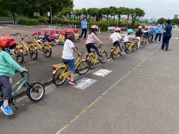 交通公園のコースを使って、自転車の扱い、走行の仕方などを学習します。