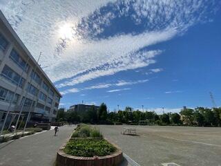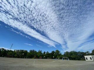 今日は、5月25日(火)です。太陽の日差しが強く、眩しく感じる朝でした。空には雲が表情豊かに流れていました。1年生の男の子が空を見上げて、「雲がすごいよ!」とうれしそうに叫んでいました。