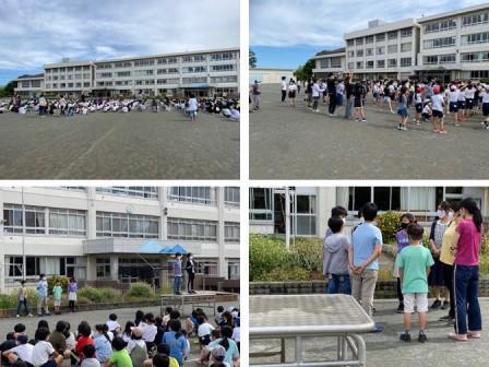 今日、3時間目の終わりに避難訓練を行いました。校内で火災が起き、中央の階段は避難経路として使えない、という査定でした。雨が降ってきたため、廊下に整列し、人員確認をするところまで行いました。