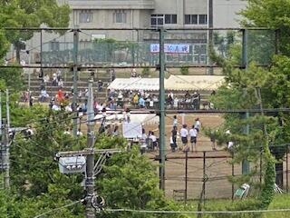 保護者の方以外、参観することができないので、永山小学校の4階の教室から、そしてフェンスの外から、少しだけですが中学生たち、そして永山小学校を卒業していった先輩たちの姿を観ました。遠くから観ていても、うれしそうに、楽しそうな表情が伝わってきました。