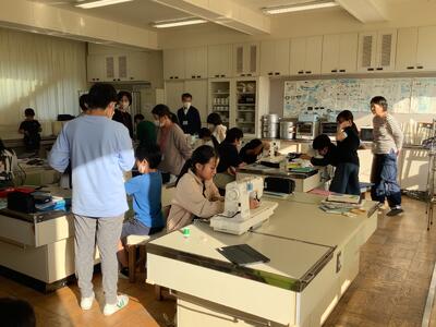 5年生の家庭科学習では、ミシンの実習があります。毎年、PTAの皆さんにお手伝いいただいております。おかげさまで、全員がミシンを使って小物や試し縫いの作業ができました。一人でいくつもの袋物を作る子供もいて、みんな上手になりました。お手伝いいただき、本当にありがとうございました。