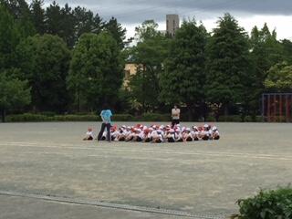 3時間目、1年生は学年全体で体育の学習をしました。指示を聞く。整列をする。体育座りをする。準備体操をしっかりとする。体育の学習は、集団生活の中で大切なことを、身体活動を通して身につける、とても大切な学習の場です。入学してまだ一ヶ月しか経っていないのですが、ひとつひとつ身についてきています。頑張っているんです!