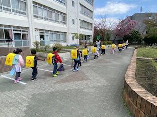 今日は、入学式が予定されているので、各クラスごとに校庭で集まり、あいさつや諸連絡をし、すぐに下校となりました。明日以降、教室でじっくりと学級での活動をしていきましょう。