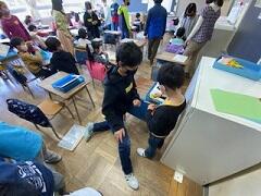 ただ1年生の代わりにやってしまうのではなく、1年生が自分でやり遂げられるような言葉かけやアドバイスをしたり、手本を見せたりと工夫をしていました。「できなかった時は、言っていいんだよ。」とやさしく声をかけ、見守る6年生の姿。なんだか見習いたくなるほどでした。