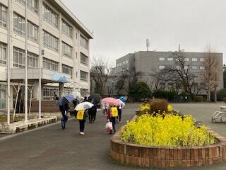 今日は、2月15日(月)です。みんなが登校してくる時間帯、最初は降っていなかったんですが、途中からぽつぽつと雨が降り出し、1時間目が始まるころには、しっかりとした雨脚となりました。雨の中のスタートとなった今週ですが、明日からはまた天気が良くなるそうです。今週も頑張っていきましょう!