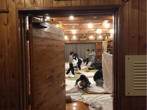 さぁ、2日目の活動がスタートです。頑張りましょう!まずは、健康観察と寝具の片付けです。