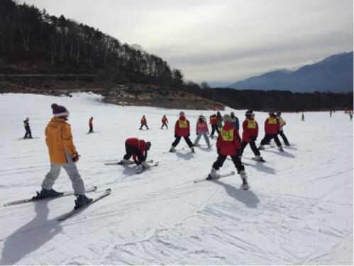 スキー場に到着。2日目のスキー教室がまもなく始まります!