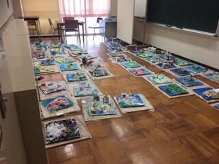 図工室だけではなく、いろいろな場所で作品たちが待機をしています。いつもと違う部屋の雰囲気にもなり、それはそれで、素敵だなーなんて思ってしまいます。