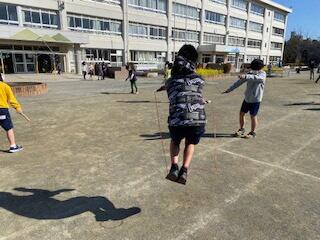 今日は、2月4日(木)です。今日も気持ちよく晴れました。気持ちがいいです。木曜日は「ながやままわとび」の日。短なわで、それぞれ自分の技を磨きました。できなかった技ができた時の、とってもうれしそうな表情。とっても素敵です。また、何度も何度も挑戦し、うまくいかなかったときの悔しそうな表情。とっても素敵です。技もだんだんレベルアップしていますが、取り組む意欲、やる気が日々レベルアップしています。