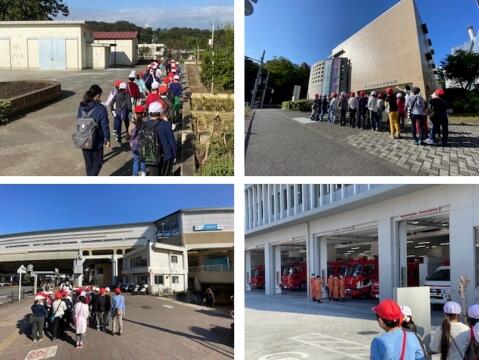 駅周辺では、多摩保健所・交番・消防署と、人々の命と生活にかかわりのある場所に行きました。外から見るだけではありますが、担任の先生から話を聞きながら、それぞれの役割や私たちとのかかわりを考えました。