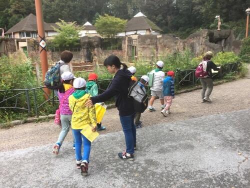 これから、班ごとにアフリカ園を見て回ります。2年生は、1年生をリードして頑張ります。