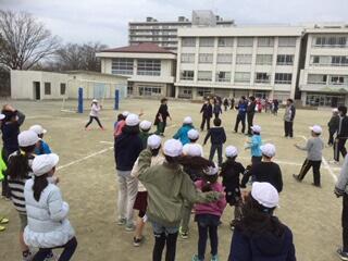 今日は、昼休み時間を使って「たてわり班対抗 ドッジボール大会」を行いました。今年度のたてわり班活動も、いよいよ大詰め。今日は対抗戦形式で、全校みんなでドッジボールを楽しみました。もちろん(?)先生チームも結成し、参加しましたよ!「先生たち、大人げないよー!」と子供たちに言われつつも、勝利を目指して頑張る先生チームでした!(利き手ではない方の腕で投げました)