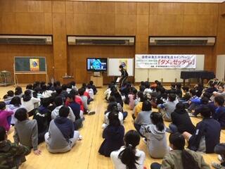 今日は、5時間目に6年生が「薬物乱用防止教室」に取り組みました。「稲城多摩ライオンズクラブ」の方々が来てくださり、指導していただきました。